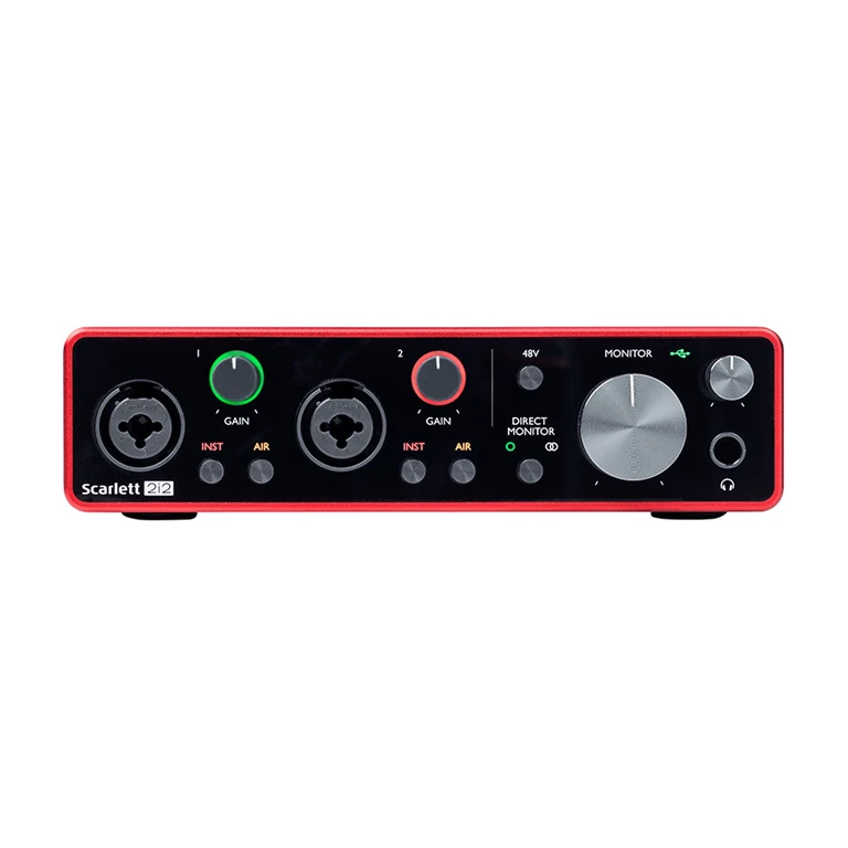 La interfaz Scarlett 2i2 incluye preamplificadores de micrófono de focusrite 3ra Generación con sonido natural y Air, para emular los preamplificadores ISA originales